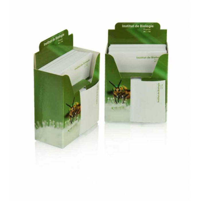 Nützliche und praktische Box mit Folie laminiert, enthält Notizzettel und Zick-Zack-Haftnotizen. Ein unverzichtbares Produkt auf dem Schreibtisch.Abwechselnd angeordnete selbstklebende Blätter und ungeklebte Blätter in einer Box bieten eine komfortable Handhabung.Anzahl der Blätter: ungeklebte Blätter 250, selbstklebende Blätter : 100. Empfohlener Druck: 1-4 Farben. Die Box kann mit mattierter, glänzender oder samtiger Folie laminiert werden.