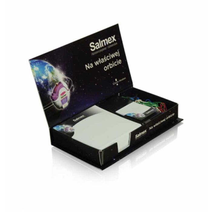 Das Schreibtischzubehör-Set besteht aus Haftnotizen, kleinen Zetteln und Büroklammern. Der flache Deckel ermöglicht eine große Druckfläche.Verfügbare Abmessungen:Deckel 154 x 86 mm / geschlossenBox 144 x 80 x 20 mm< /br>Box für selbstklebende Notizzettel 36 x 79 x 20 mmBlätter 74 x 78 mm, Menge 180 Stück.Zickzack selbstklebende Notizzettel 34 x 75 mm,Anzahl der Blätter: 25-100Büroklammern 50 StückDruck: 1-4 ( außer Clips). Laminierter Einband.