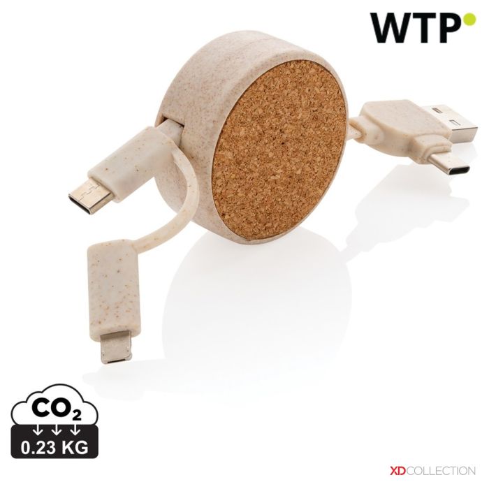 Cork and Wheat 6-in-1 retractable cable, beige, XDP302.369