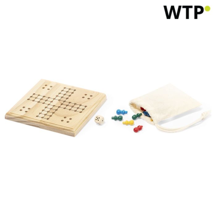 Crafted from durable wood, this game is designed to withstand hours of entertainment, making it a lasting reminder of your brand. Its compact dimensions of 12 x 12 x 1.5 cm ensure that it is easy to store and transport, while the included cotton pouch adds an eco-friendly touch, promoting your brands values of sustainability.