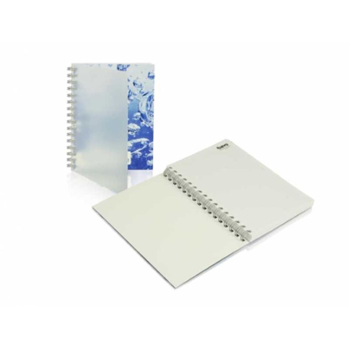 Notebook with spiral, additionally available polypropylene cover. The notebook thus looks better and offers additional protection to the pages. Dimensions:WTP380_A5cover 149 x 210 mm / closedpages 148 x 210 mm Number of pages: 25-50-100, printing 1-4 colors. The product is also available in A4 or A6 format.