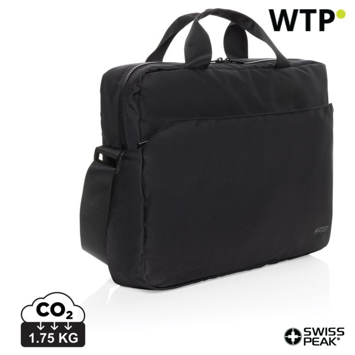 With our advanced printing facilities, including silkscreen, pad, digital, sublimation, transfer, and UV printing, we can ensure that your branding stands out. Whether youre looking to create a cohesive look for your team or seeking a standout gift for a special occasion, the Swiss Peak Aware™ bag is an ideal choice. Plus, we can customize the packaging to elevate the unboxing experience, making it even more memorable for the recipient. Choose this laptop bag to combine functionality with a strong message of sustainability and style.