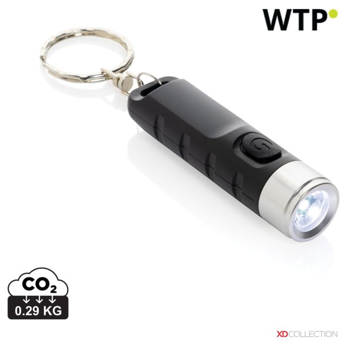 Globix RCS reciklirani plastični USB punjivi privjesak za ključeve s lampom, crno, XDP514.0201