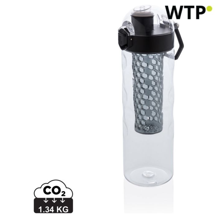 Dodajte zdrave voćne okuse svojoj vodi. Ova boca s dizajnom i detaljima u obliku saća nudi praktično pijenje jednom rukom. Pritisnite gumb i poklopac se otvara. Postoji poseban mehanizam zaključavanja koji sprječava korisnike da slučajno pritisnu gumb. Uključena ručka za nošenje. Ova boca za infuziju napravljena je od izdržljivog i inovativnog tritan materijala. Bez mirisa i 100% bez BPA. Sadržaj 700ml. Registrirani dizajn®