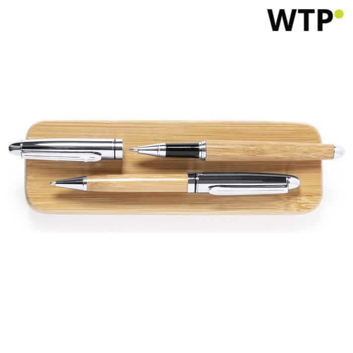 Prednosti: Materijal od bambusa promovira korištenje prirodnih resursa, dok elegantni metalni detalji dodaju dašak elegancije. Olovka ima pouzdan mehanizam za uvijanje s plavom tintom, osiguravajući glatko pisanje, dok roller dolazi s kapicom i gel tintom za premium iskustvo pisanja. Obje olovke su dizajnirane za dugovječnost, s jumbo punjenjem koje jamči produženu upotrebu.