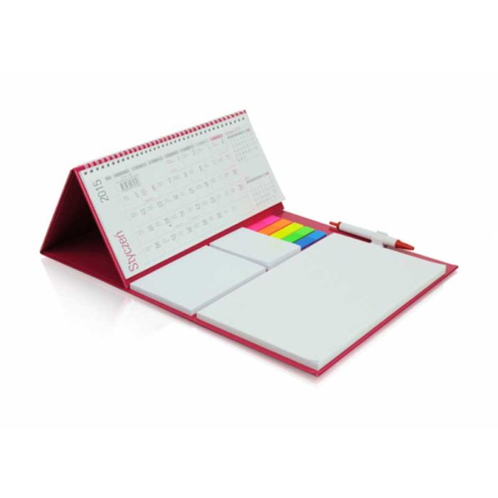 praktični set samoljepljivih bilješki i kazala s listovima kalendara. Na stranicu je dodan prostor za olovku. Izvrsna površina za ispis vašeg logotipa.Dostupne dimenzije:tvrdi uvez 230 x 313 mm / zatvorenkalendar 224 x 99 mmknjiga 204 x 120 mm< / br>samoljepljivi listovi 100 x 72 mm i 50 x 72 mmindeks listovi od folije 12 x 44 mmBroj listova - kalendar: 12, bilježnica: 52, samo ljepljivi listovi 50, indeksni listovi: 20, tisak 1-4 boje. Korice kaširane folijom.Olovka je dostupna za narudžbu kao poseban proizvod.