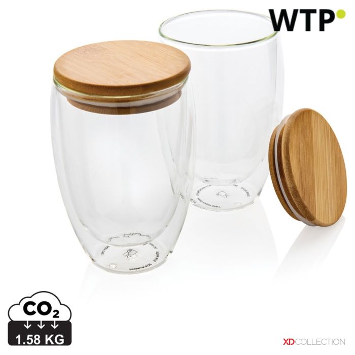 Set di 2 pezzi in vetro borosilicato a doppia parete con coperchio in bambù da 350 ml, bandiera, XDP432.270