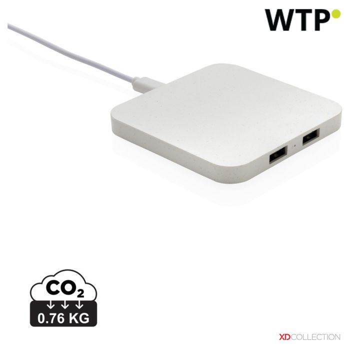 Caricatore wireless 10W in plastica riciclata RCS con porte USB, bianco, XDP308.463