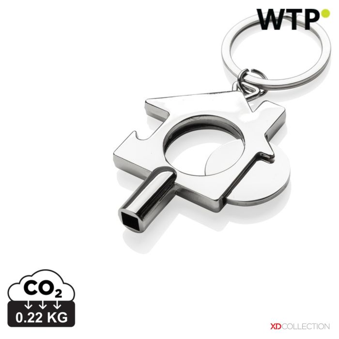 Portachiavi con chiave radiatore in lega di zinco riciclato RCS con moneta, argento, XDP191.7002