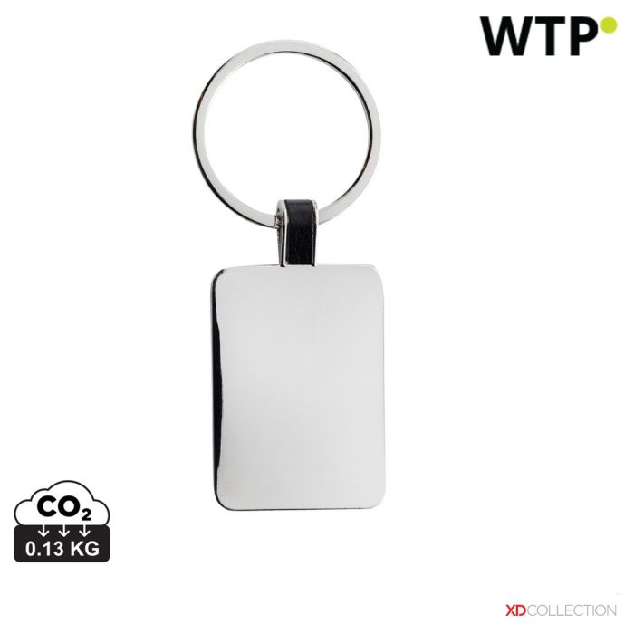 Portachiavi rettangolare in lega di zinco riciclato RCS, argento, XDP191.6302