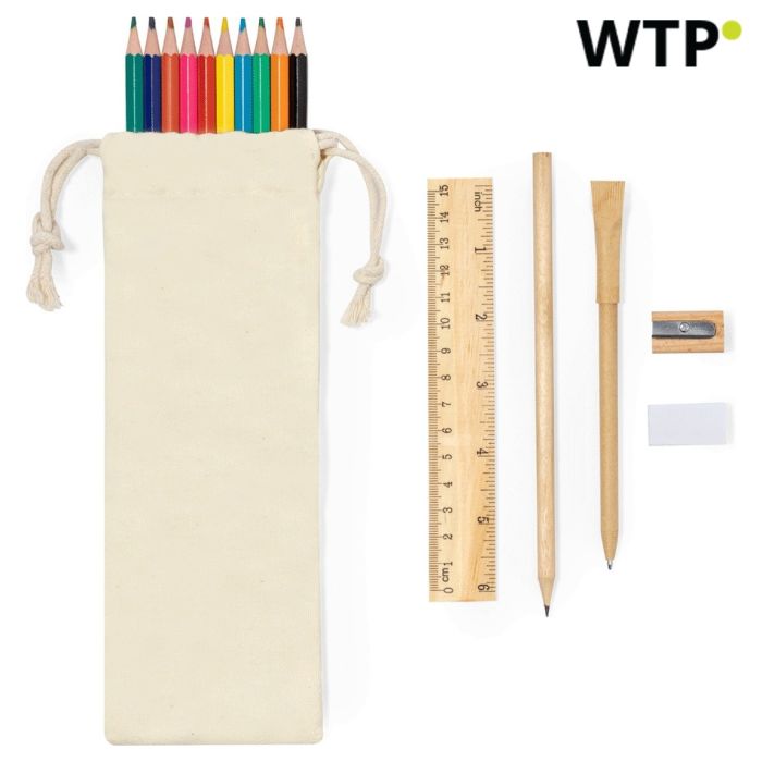 Le dimensioni del set sono 24 x 34 x 2 cm e pesa solo 0,35 kg, rendendolo facile da distribuire in eventi, workshop o come parte di pacchetti regalo aziendali. Gli articoli sono presentati in una elegante pochette di cotone, aumentando lappeal generale e la praticità del set.