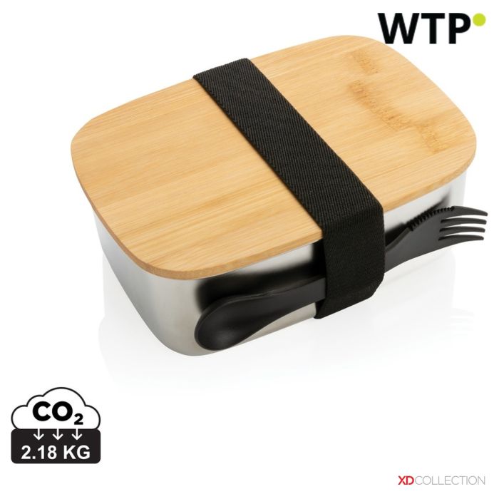 Lunch box in acciaio inossidabile con coperchio in bambù e spork, argento, XDP269.622