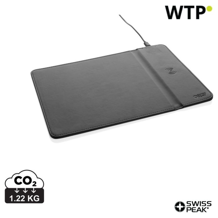 Tappetino per mouse wireless da carica 10W in PU riciclato Swiss Peak RCS, nero, XDP300.241