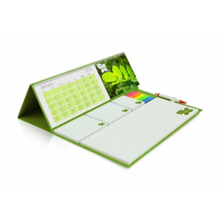 set di fogli semplici, fogli autoadesivi, fogli indice e un calendario. Spazio aggiunto per una penna sul lato.Dimensioni disponibili:copertina rigida 315 x 355 mm / chiusacalendario 309 x 99 mmtaccuino 290 x 160 mm fogli autoadesivi 100 x 72 mm e 50 x 72 mmfogli indice in pellicola 12 x 44 mmNumero di fogli - calendario: 12, quaderno: 52, fogli autoadesivi 50, fogli indice: 20, stampa 1-4 colori. Copertina laminata con pellicola.La penna è disponibile su ordinazione come prodotto speciale.