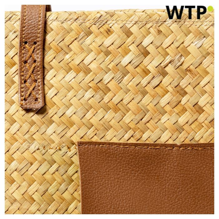 Torba je izdelana iz visokokakovostne slame in PU usnja, kar zagotavlja trajnost in šik videz. Velik PU usnjen znak je odlična funkcija za prilagoditev, ki podjetjem omogoča, da predstavijo svojo blagovno znamko preko laserskega graviranja, vezenja ali drugih tiskarskih metod, kot so svileni tisk in pad tisk. To jo naredi za idealno izbiro za promocijske in korporativne darila.