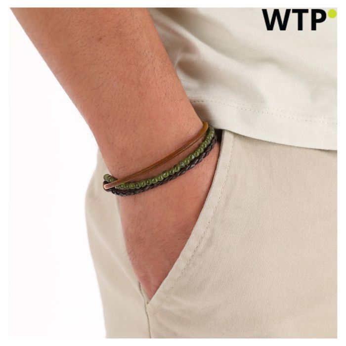 Povečajte svojo promocijsko strategijo z našo izvrstno zapestnico, OTK21376000000, popolno mešanico sloga in funkcionalnosti. Izdelana iz visokokakovostnega usnja, ta zapestnica ponuja edinstveno zasnovo, ki združuje svetlo rjavo usnje z gladkimi zaključki, živahne zelene steklene kroglice in zapleteno pleteno rjavo usnje. Njeno nastavljivo zapiranje iz mehkega voščenega bombaža zagotavlja udobno prileganje za vsakogar, kar jo naredi za idealno darilo ob vsaki priložnosti.