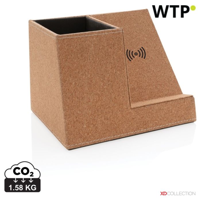Držalo za svinčnike iz plute in 5W brezžični polnilec, bež, XDP308.199