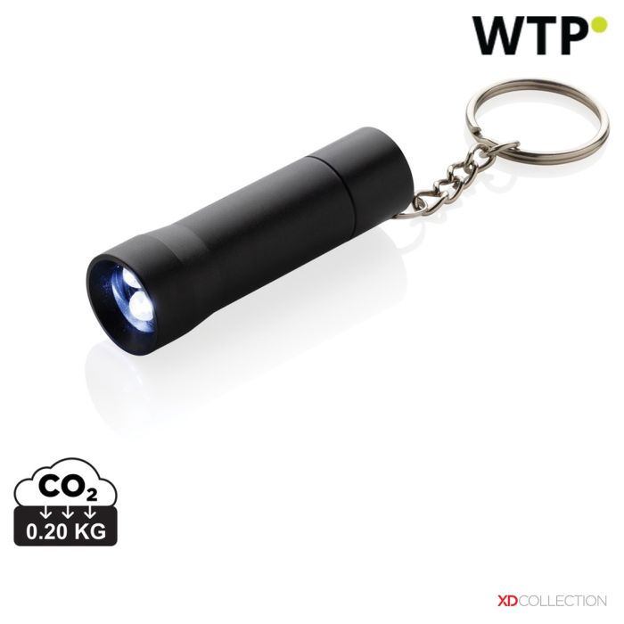 3 LED svetilka v žepni velikosti, izdelana iz recikliranega aluminija RCS. Skupna reciklirana vsebnost: 50 % glede na skupno težo izdelka. Certifikacija RCS zagotavlja povsem certificirano dobavno verigo recikliranih materialov. Z 15 lumeni, ki omogočajo delovanje do 6 ur z enim kompletom baterij (vključenih). Z obeskom za ključe. Razdalja svetlobnega snopa: 3 metre. Pakirano v FSC® mešanem kraft embalaži.