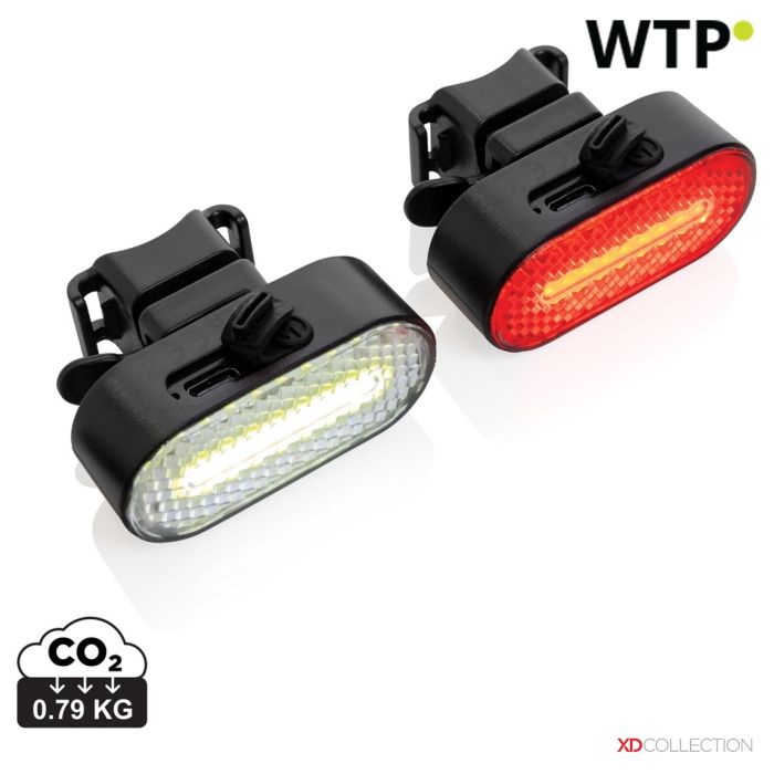 Lumino RCS reciklirana plastična USB polnilna kolesarska lučka set, črna, XDP513.8401