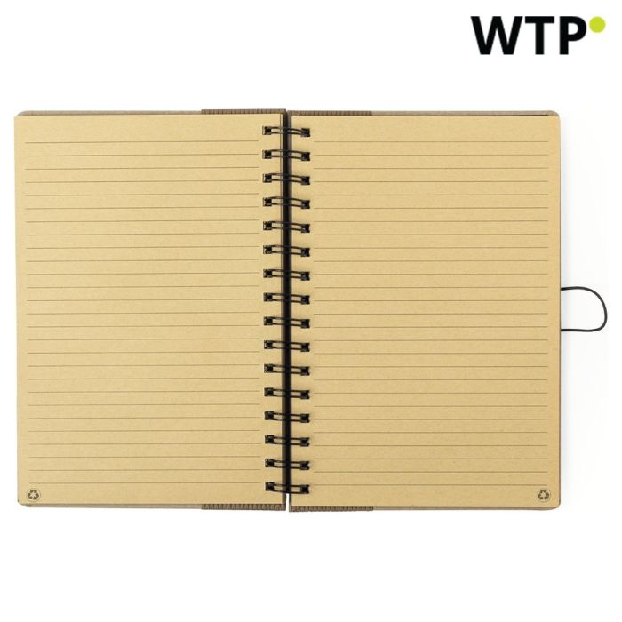 Narejen iz recikliranega kartona, ta zvezek meri 15.7 x 21.5 x 2.2 cm in tehta le 0.28 kg, kar ga naredi lahkega in enostavnega za prenašanje. S 80 listi, ki imajo črtasto postavitev, ponuja dovolj prostora za zapisovanje idej, zapiskov s sestankov ali ustvarjalnih skic. Drzen dizajn trdih platnic zagotavlja, da vaša blagovna znamka izstopa, kar ga naredi za idealno izbiro za korporativne dogodke, sejemske prireditve ali kot premišljeno darilo za zaposlene in stranke.