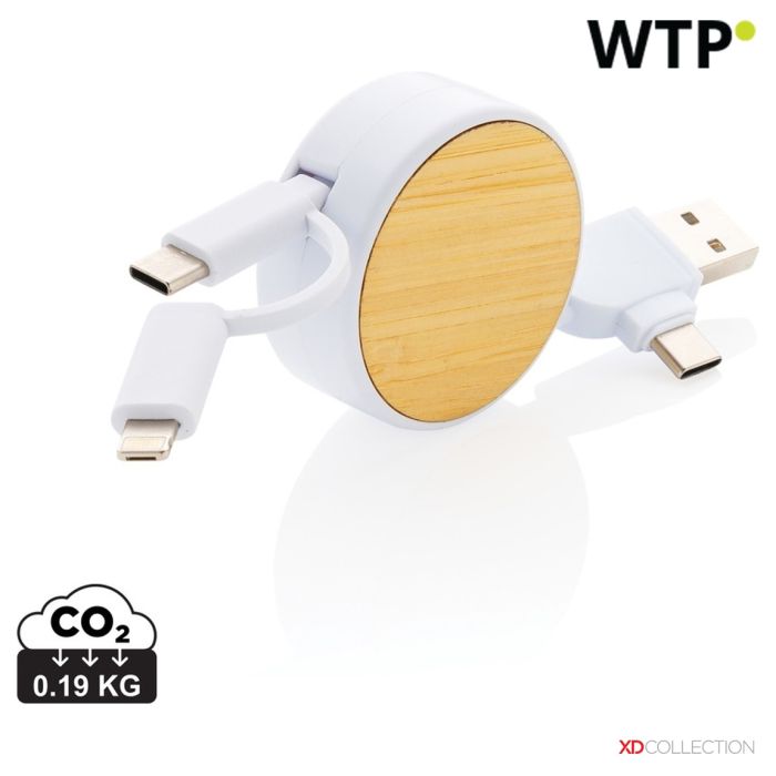 Izboljšajte prepoznavnost svoje blagovne znamke z našim izvlečnim večnamenskim kablom, idealnim promocijskim artiklom za tehnološko usmerjena podjetja in ekološke kampanje. Ta vsestranski dodatek ne le zadostuje potrebam po polnjenju sodobnih naprav, temveč služi tudi kot popolno korporativno darilo za zaposlene, stranke ali na sejmih. Predstavljajte si, da je vaše logotip jasno prikazan na tem trajnostnem izdelku, ki pušča trajen vtis, hkrati pa prikazuje vašo zavezanost okoljski odgovornosti.