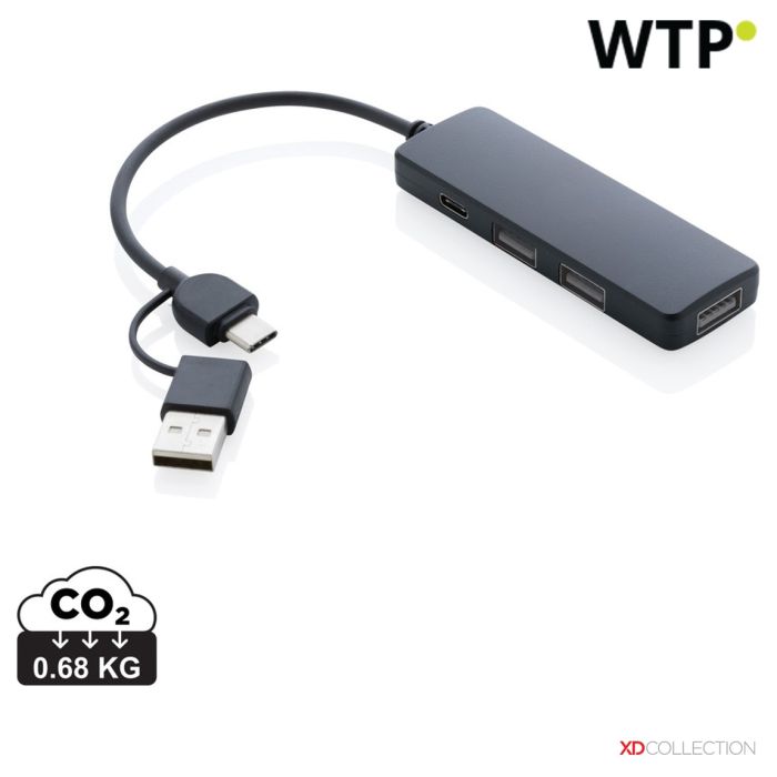 RCS recikliran plastični USB hub z dvojno vhodno povezavo, črna, XDP308.261