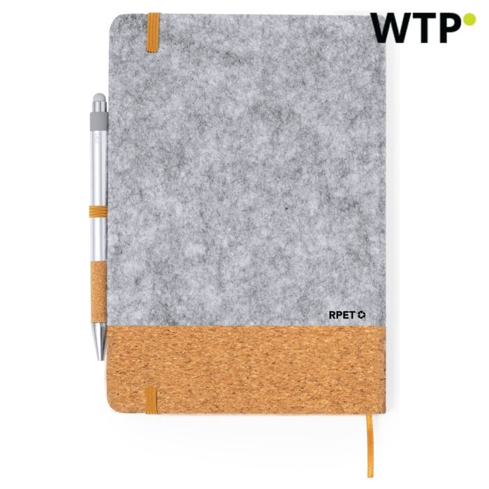 Promocijska in korporativna darila kot Set, OTK21062000000 so popolna za povečanje prepoznavnosti vaše blagovne znamke in zvestobe strank. Ta ekološki set ne le da prikazuje vašo zavezanost trajnosti, temveč služi tudi kot praktično orodje za vsakodnevno uporabo. Beležnica ima trdo platnico iz RPET filca in naravne plute, kar ji daje edinstven pridih, hkrati pa je okolju prijazna. Z 80 črtastimi stranmi je idealna za zapisovanje opomb, idej ali opomnikov. Elastičen trak za zapiranje in kazalo dodajata funkcionalnost, kar jo naredi za zanesljivega spremljevalca na sestankih ali za osebno uporabo.