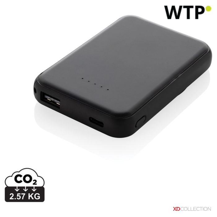 5.000 mAh prenosni powerbank z 5W magnetskim brezžičnim polnjenjem, kjer je ohišje izdelano iz RCS certificirane reciklirane ABS plastike. RCS (Recycled Claim Standard) je standard za preverjanje reciklirane vsebine izdelka skozi celotno dobavno verigo. Skupna reciklirana vsebnost: 20 % glede na skupno težo izdelka. Z USB A in UCB C izhodno možnostjo. Powerbank vsebuje dolgo življenjsko dobo razreda A 5.000 mAh litij-polimerne baterije. Indikatorji moči bodo pokazali preostalo raven energije, tako da boste vedno vedeli, kdaj je treba napolniti.