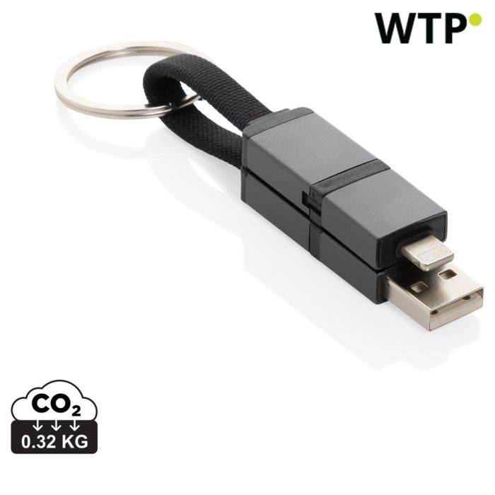 Terra recycled aluminium 4 in 1 60W fast charging cable, siva, XDP302.7602